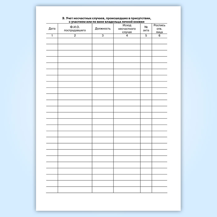 З. Учет несчастных случаев, происшедших в присутствии, с участием или по вине владельца личной книжки