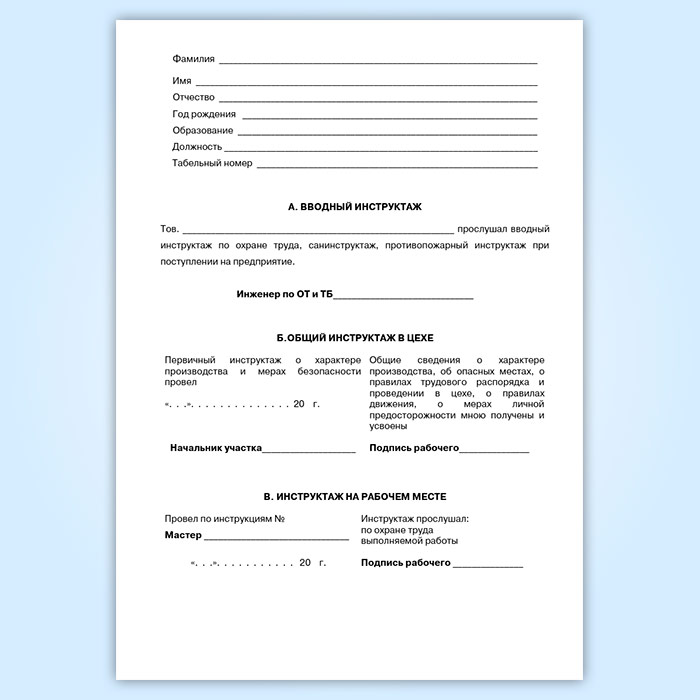 Личная книжка инструктажа по охране труда