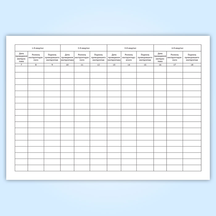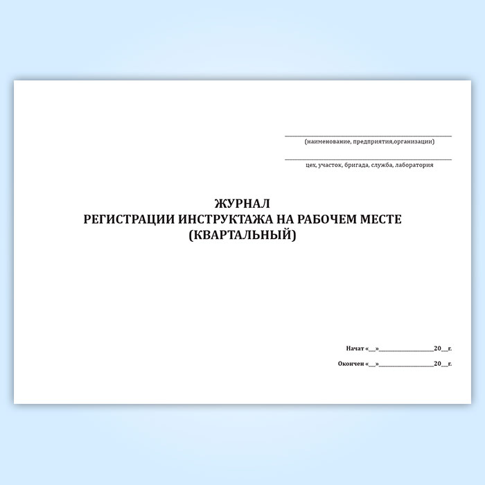 В отдельных случаях, чаще на производстве с повышенной опасностью инструктаж на рабочем месте проводят ежеквартально и кроме журнала регистрации инструктажа на рабочем месте ведут квартальный журнал регистрации инструктажа на рабочем месте .