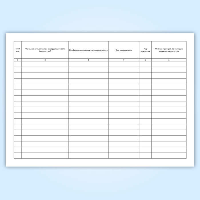 Графы квартального журнала регистрации инструктажа на рабочем месте: