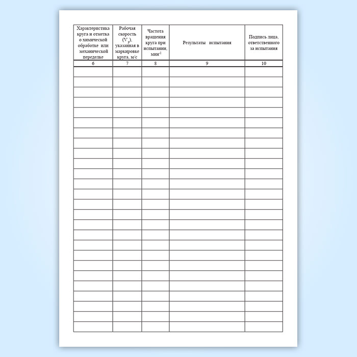 Журнал испытания абразивного и эльборового инструмента имеет графы (столбцы):