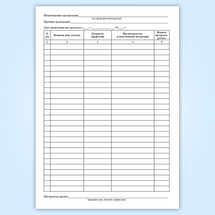 Журнал учета инструктажей имеет графы: