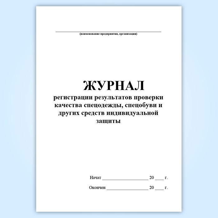 Журнал регистрации результатов проверки качества спецодежды, спецобуви и других средств индивидуальной защиты
