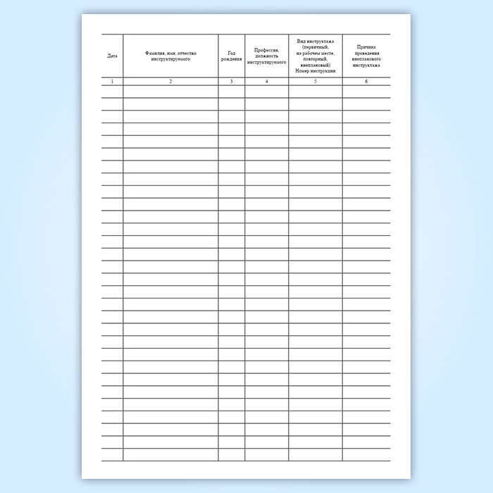 Журнал регистрации инструктажа по охране труда имеет графы: