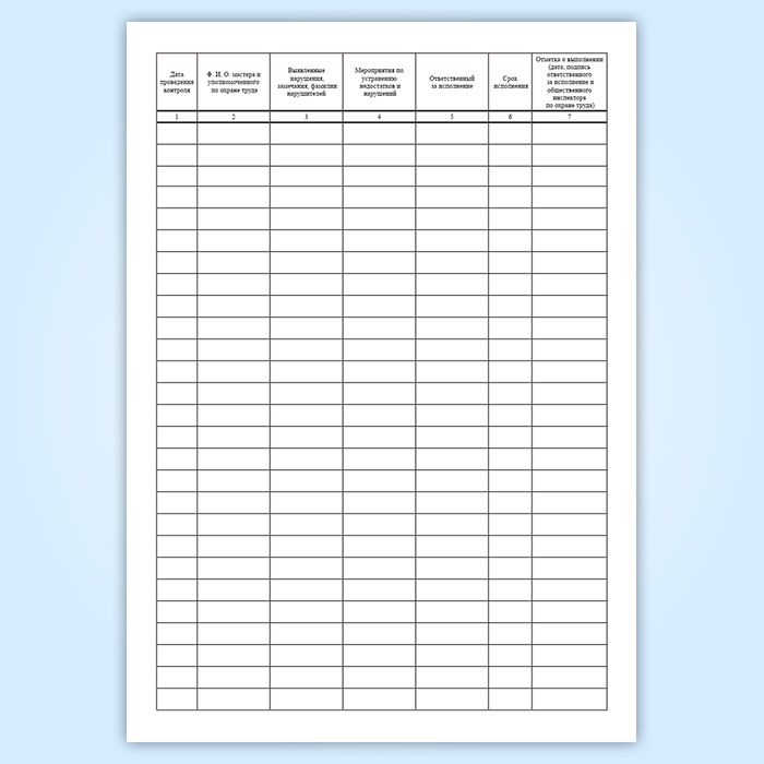 Журнал административно-общественного контроля за состоянием условий и охраны труда первой ступени
