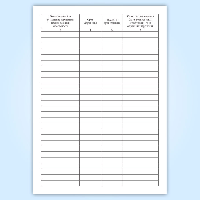 6. Отметка о выполнении (дата, подпись лица, ответственного за устранение нарушений)