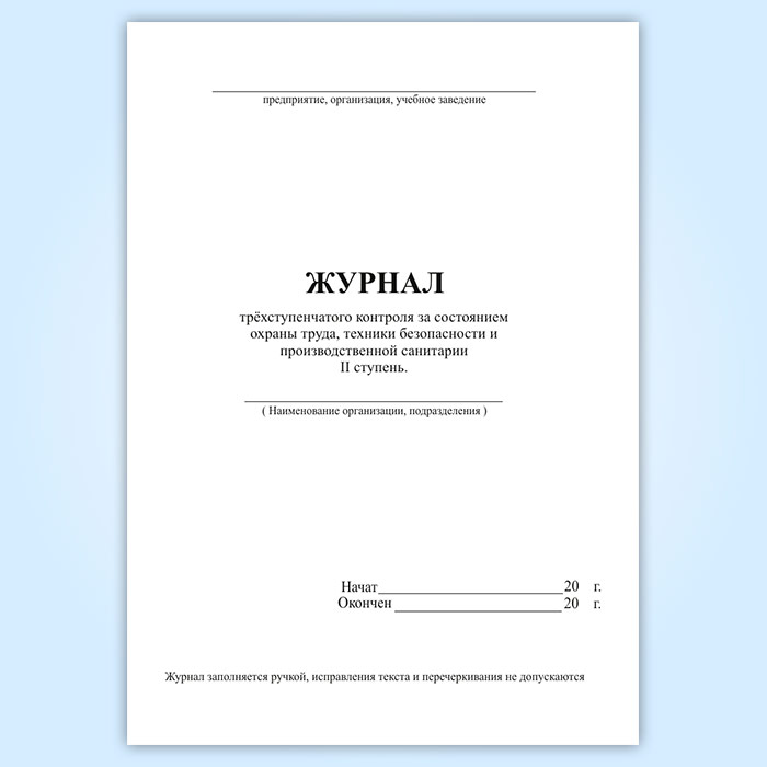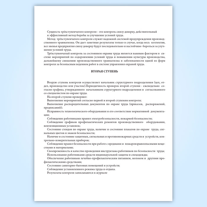 Журнал трёхступенчатого контроля за состоянием охраны труда, техники безопасности и производственной санитарии II ступень (форма Ж18)