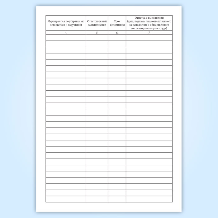 7. Отметка о выполнении (дата, подпись, лица ответственного за исполнение и общественного инспектора по охране труда