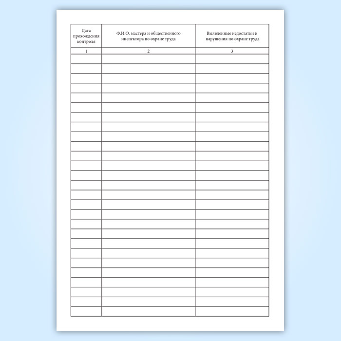 Журнал трёхступенчатого контроля за состоянием охраны труда, техники безопасности и производственной санитарии I ступень (Форма Ж17) имеет графы: