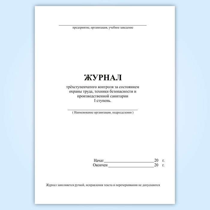 Журнал трёхступенчатого контроля за состоянием охраны труда, техники безопасности и производственной санитарии 1 ступень (форма Ж17)