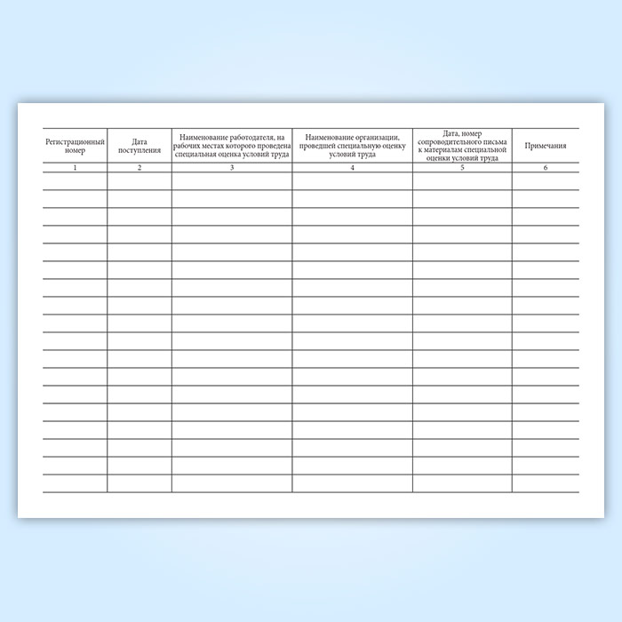 Журнал регистрации поступления материалов по результатам проведения специальной оценки условий труда имеет графы: