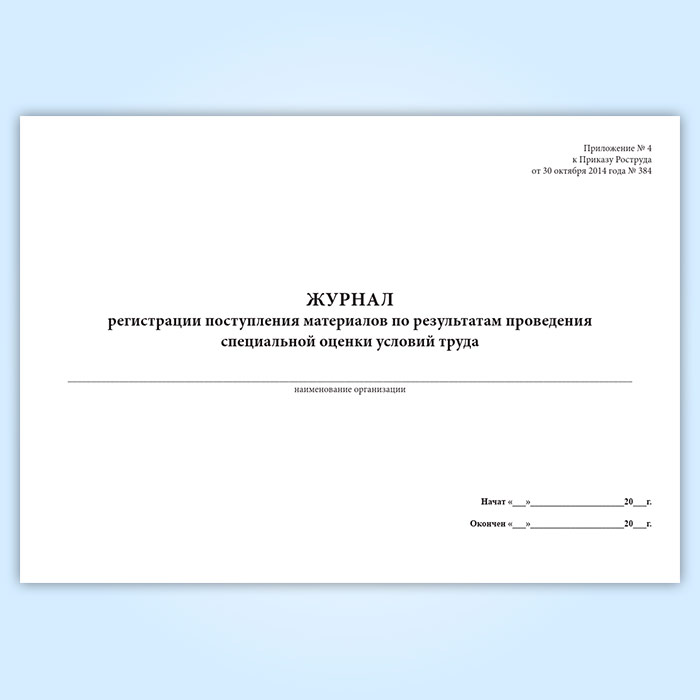 Журнал регистрации поступления материалов по результатам проведения специальной оценки условий труда