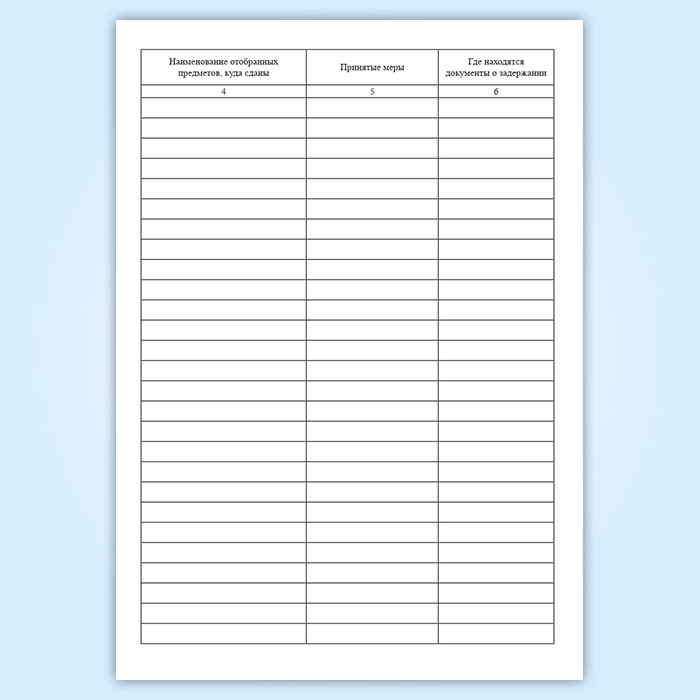 Книга учета задержанных нарушителей внутриобъектового и пропускного режима содержит графы: