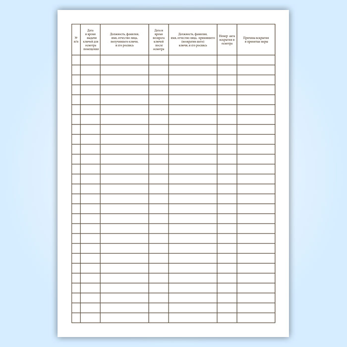 Журнал учета выдачи ключей для осмотра жилых домов (помещений)