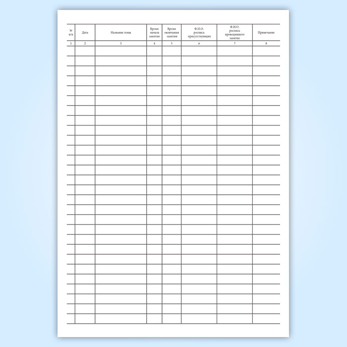 7. Ф.И.О. роспись проводившего занятие