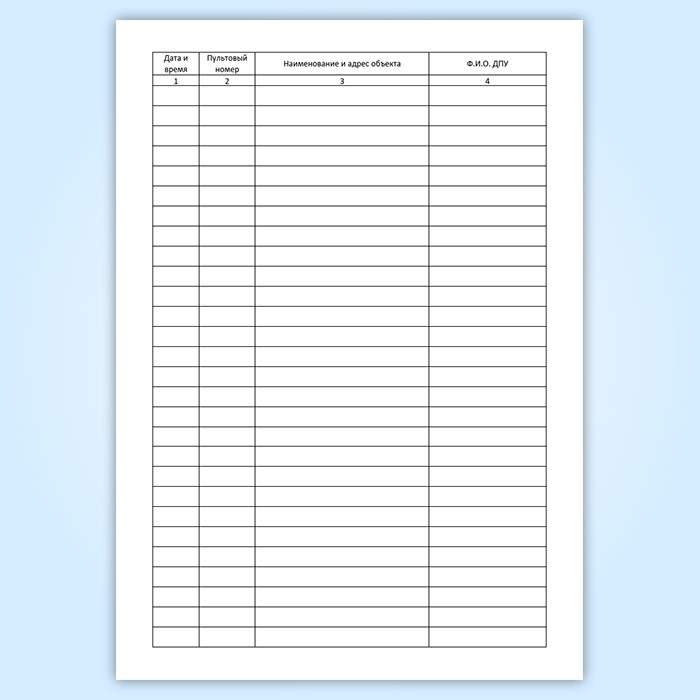 Журнал учета срабатываний ТСО имеет графы: