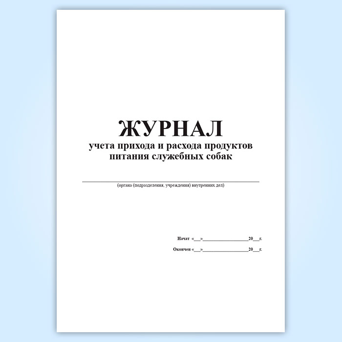 Журнал учета прихода и расхода продуктов питания служебных собак
