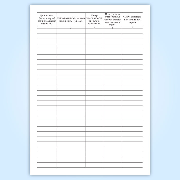 Журнал учета сдаваемых под охрану помещений содержит графы: