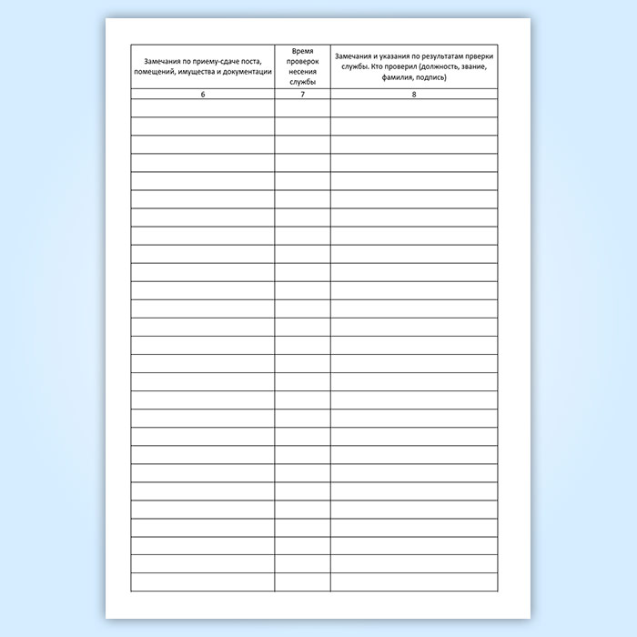 Графы журнала учета приема-сдачи поста под охрану: