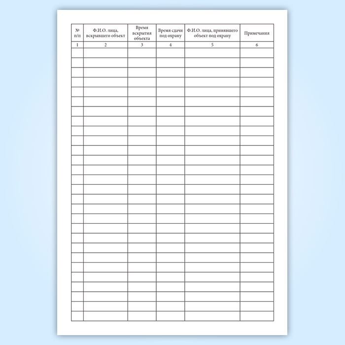 См. также Книгу учета посещений объекта и подключений сигнализации на пульт централизованного наблюдения вневедомственной охраны при органах внутренних дел (ПЦН) (Форма 127 г), графы которой отличаются.