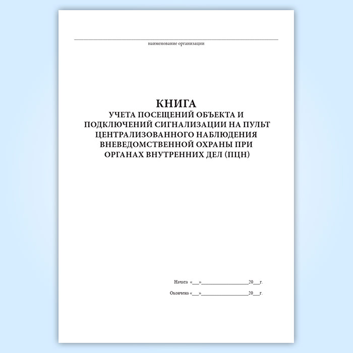 Книга учета посещений объекта и подключений сигнализации на пульт централизованного наблюдения вневедомственной охраны при органах внутренних дел (ПЦН)