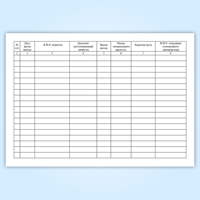 Книга учета движения автотранспорта, досмотров и вывоза материальных ценностей имеет графы: