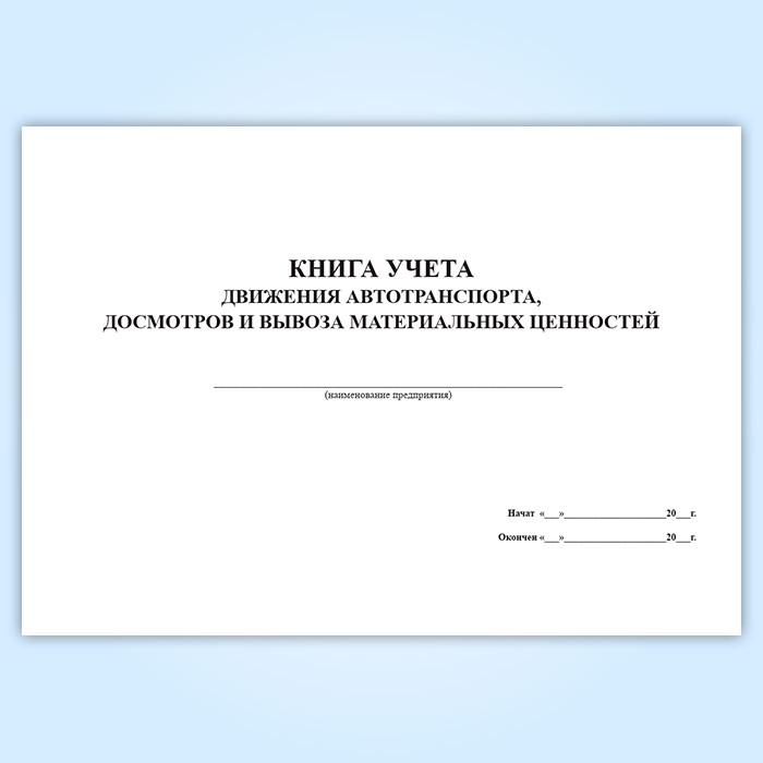 Книга учета движения автотранспорта, досмотров и вывоза материальных ценностей