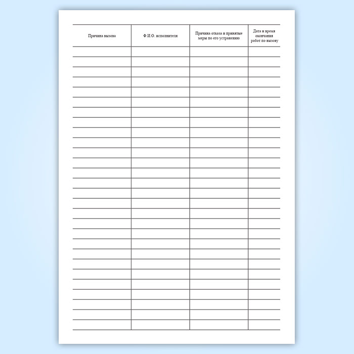 Независимо от формы поступившего от Заказчика вызова, исполнитель должен регистрировать его в журнале.