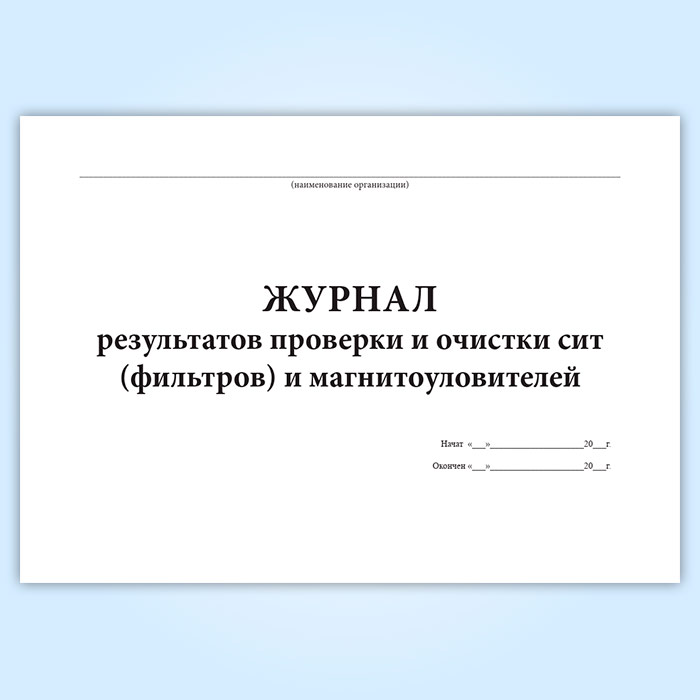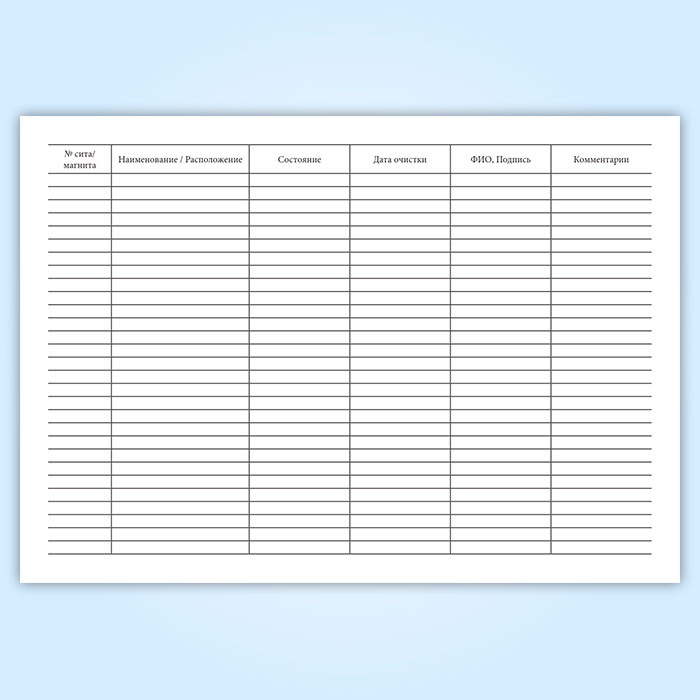 Журнал результатов проверки и очистки сит (фильтров) и магнитоуловителей