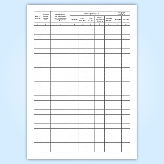 Журнал холодильной обработки мяса и мясопродуктов в камерах охлаждения и замораживания заполняется отдельно для каждого вида холодильной обработки.