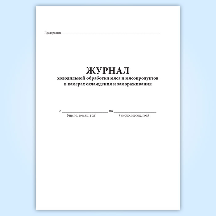 Журнал холодильной обработки мяса и мясопродуктов в камерах охлаждения и замораживания