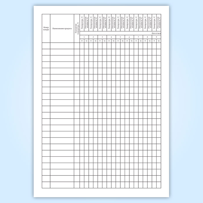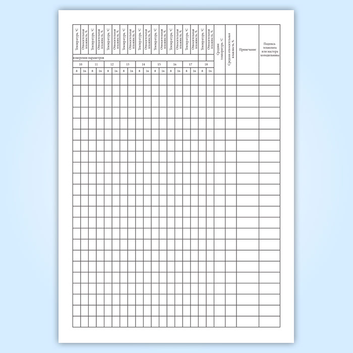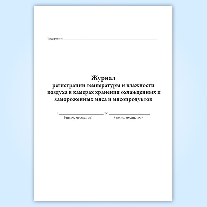 Форма журнала регистрации температуры и влажности воздуха в камерах хранения охлажденных и замороженных мяса и мясопродуктов регламентируется в Сборнике технологических инструкций и норм усушки при холодильной обработке и хранении мяса и мясопродуктов на предприятиях мясной промышленности.