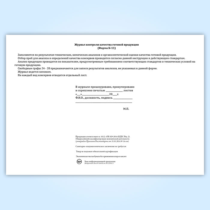 Журнал контроля качества готовой продукции (форма К-11)