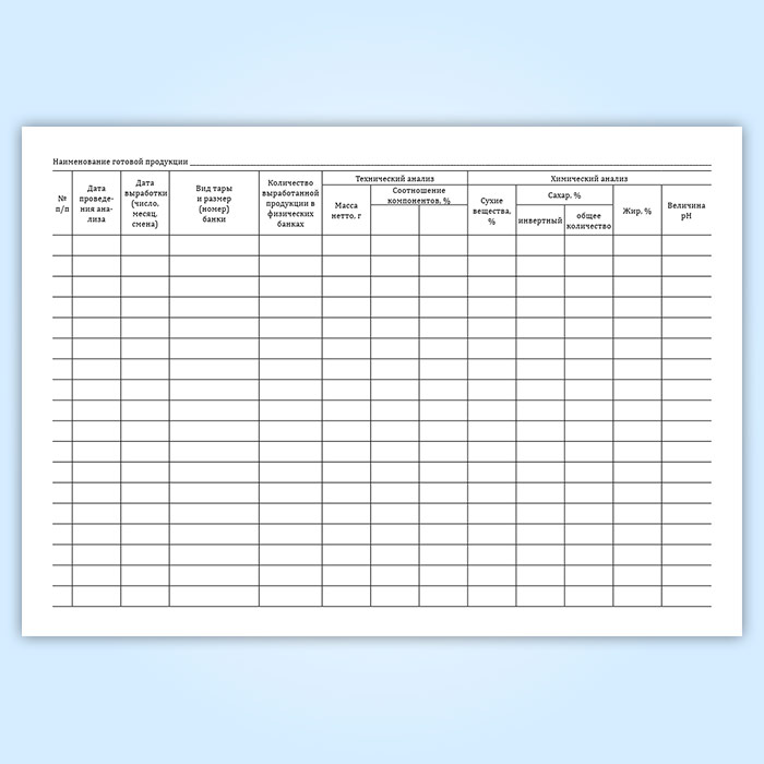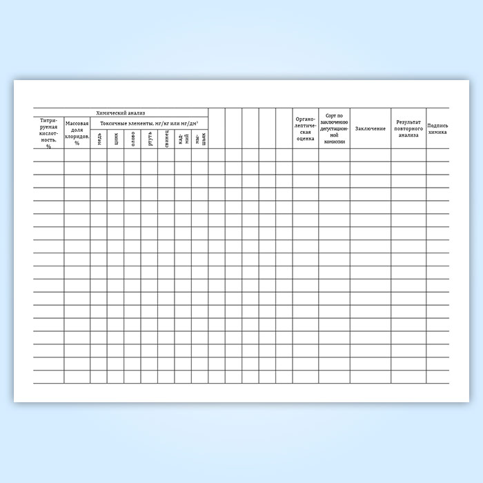Заполняется по результатам технических, химических анализов и органолептической оценки качества готовой продукции.
