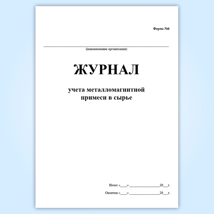 Журнал учета металломагнитной примеси в сырье (форма № 6)