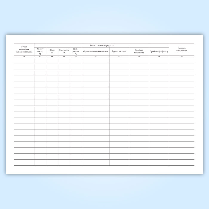 Журнал технологического процесса производства молока содержит графы: