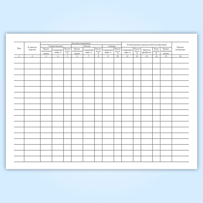 Журнал контроля технологического процесса производства и стандартизации сметаны