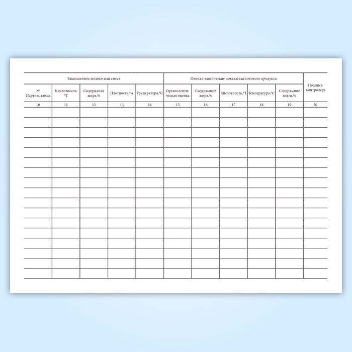 Графы журнала контроля технологического процесса производства кисломолочных и диетических продуктов: