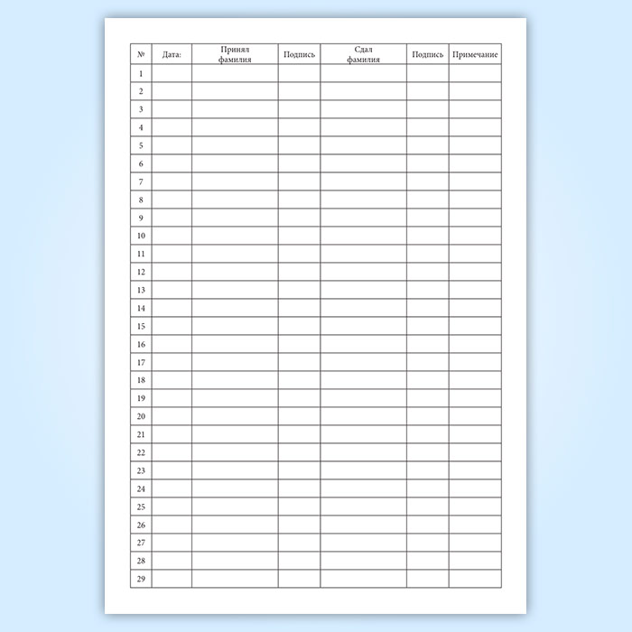 Журнал ежедневной проверки, приема/сдачи, стеклянного, пластикового и деревянного оборудования и инвентаря перед началом производства