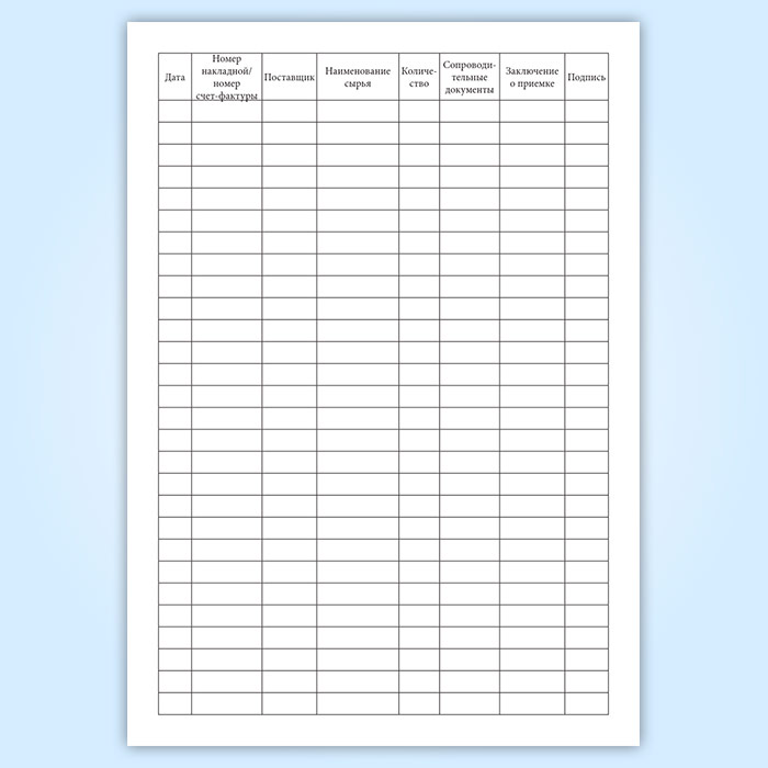 Для приемки пищевых компонентов и упаковочных материалов на предприятиях пищевой промышленности пользуются специальным журналом.