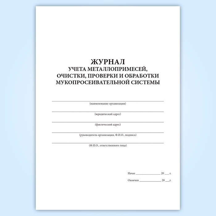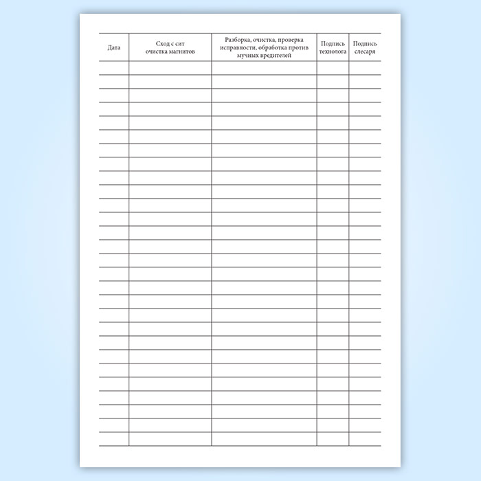 Журнал учета металлопримесей, очистки, проверки и обработки мукопросеивательной системы