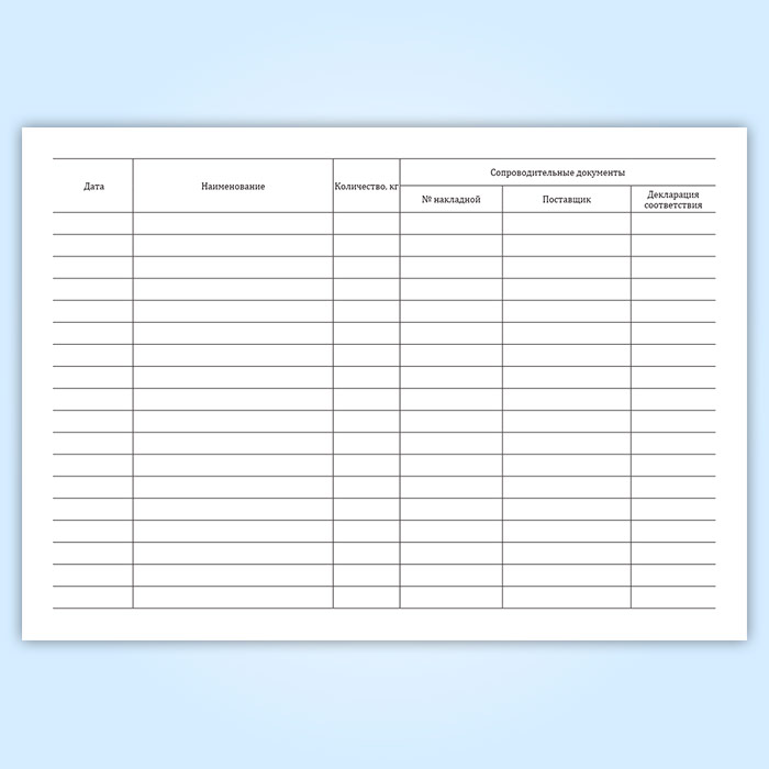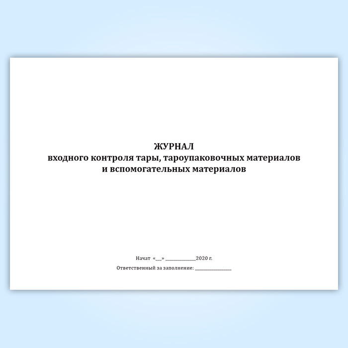 Журнал входного контроля тары, тароупаковочных материалов и вспомогательных материалов