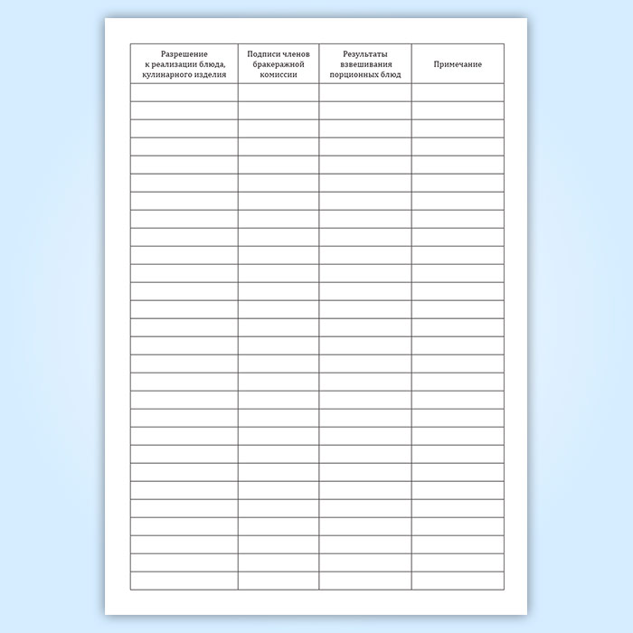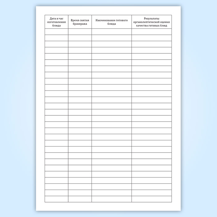 Журнал бракеража готовой пищевой продукции (СанПиН 2.3/2.4.3590-20)