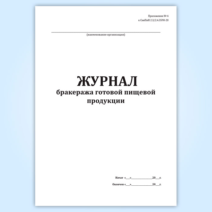 Форма журнала соответствует Приложению 4 к СанПиН 2.3/2.4.3590-20 Санитарно-эпидемиологические требования к организации общественного питания населения.