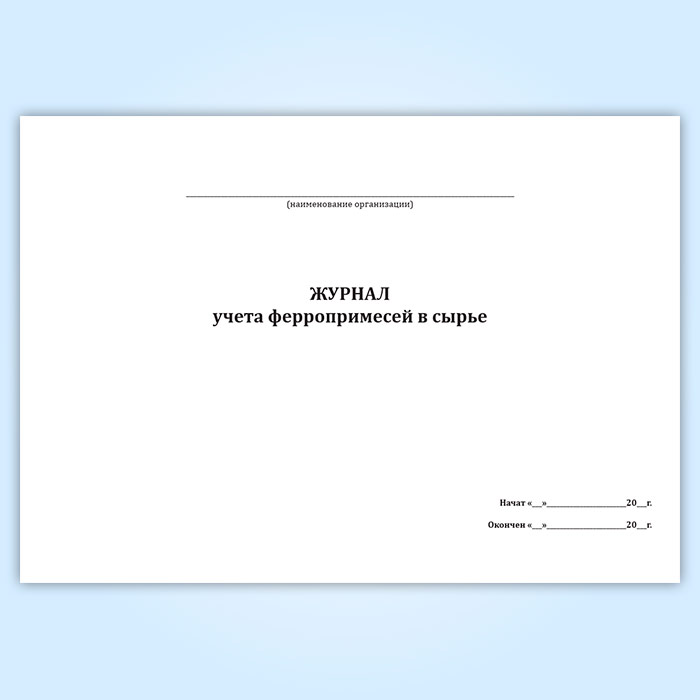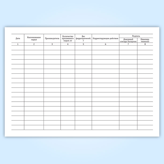 С целью учета ферропримесей в сырье ведется журнал, в котором указывают наименование сырья и вес ферропримесей.