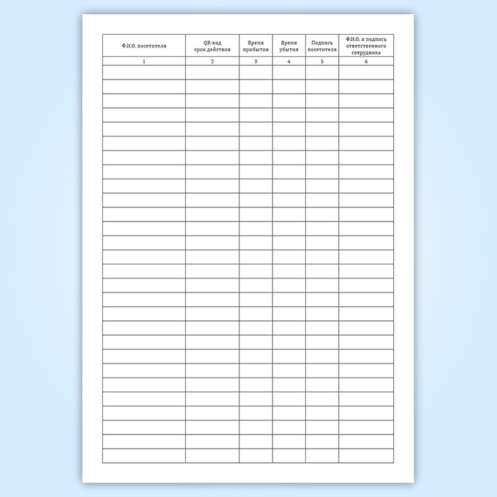 Журнал регистрации посетителей кафе с QR-кодом содержит графы: