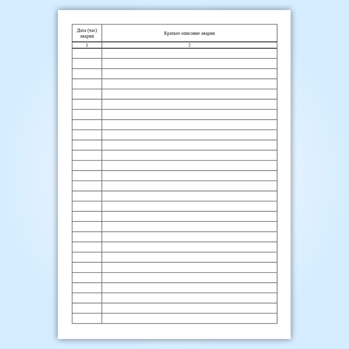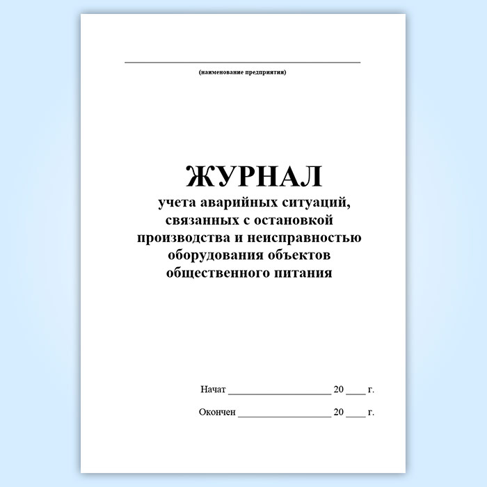 В журнале ведется учет аварийных ситуаций, связанных с остановкой производства и неисправностью оборудования объектов общественного питания.