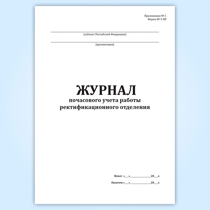 Журнал почасового учета работы ректификационного отделения (форма № 5-ПР)
