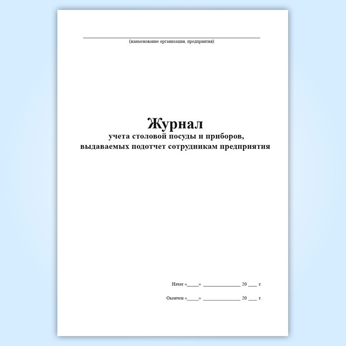 Журнал помогает систематизировать учет столовой посуды и приборов, выдаваемых подотчет сотрудникам предприятия общепита.