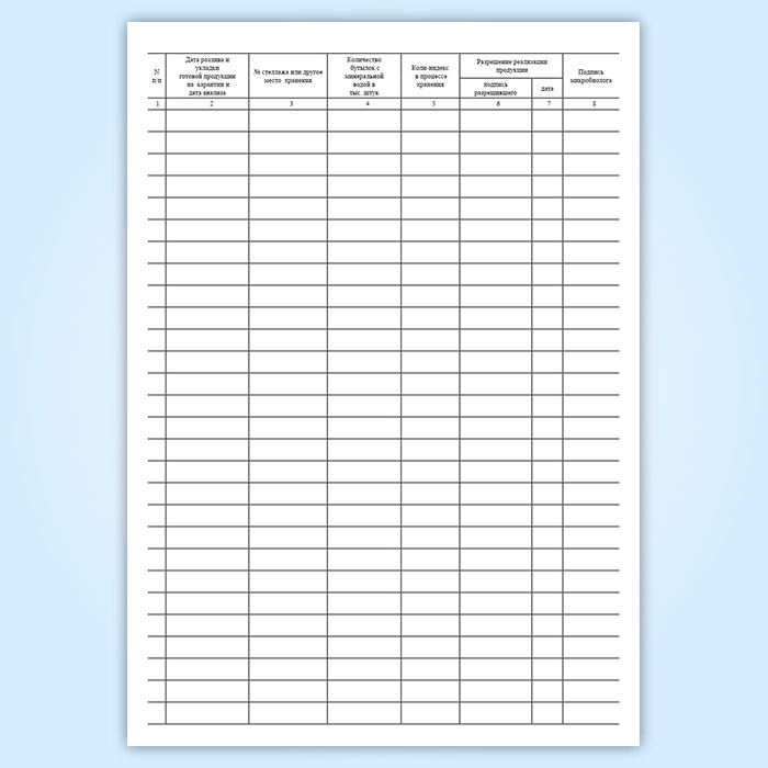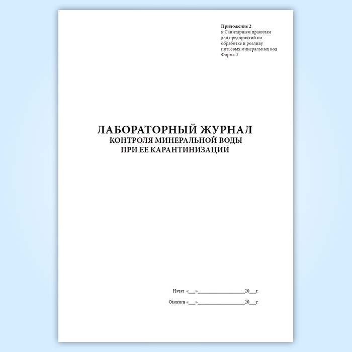 Форма лабораторного журнала контроля минеральной воды при ее карантинизации соответствует Приложению 2 к Санитарным правилам для предприятий по обработке и розливу питьевых минеральных вод.
